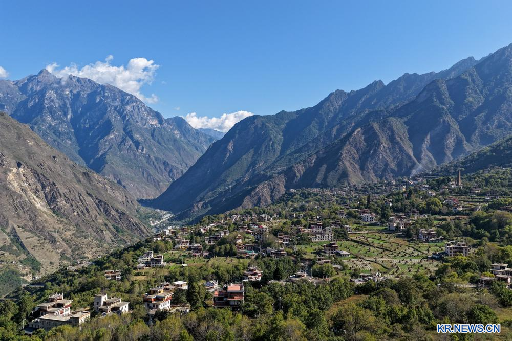 이날 쓰촨성 단바(丹巴)현 지카이촌의 마을 전경. 2025.10.18