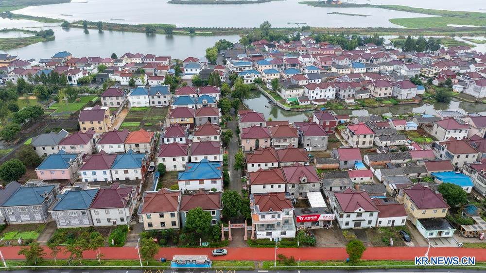17일 드론으로 내려다본 장쑤(江蘇)성 싱화(興化)시 둥뤄(東羅)촌.