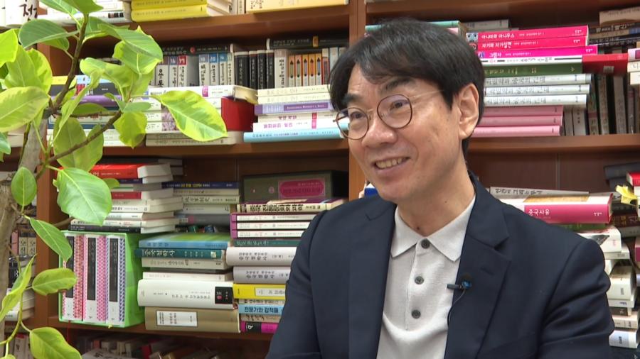 이욱연 서강대학교 인문대학 학장이 신화통신과의 인터뷰에 응하고 있다. (사진/신화통신)