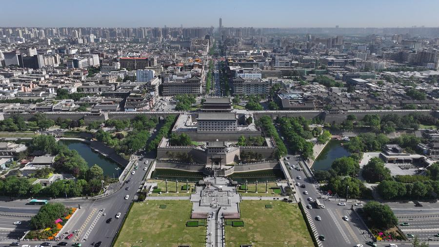 지난 5월 2일 드론으로 내려다본 시안(西安) 성벽 융닝먼(永寧門). (사진/신화통신)