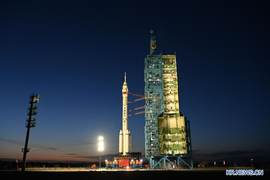 지난 4월 16일 선저우(神舟) 20호 유인우주선과 창정(長征) 2호 F 야오(遙)-20 운반로켓 조합체가 발사 구역으로 옮겨졌다. (사진/신화통신)