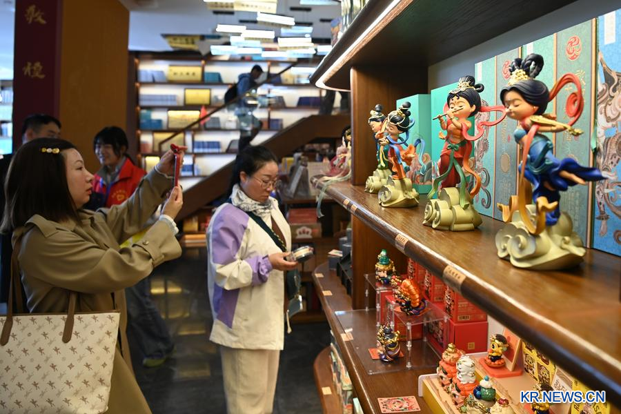 10월 11일 간쑤(甘肅)성 둔황(敦煌)서점을 방문한 관광객. (사진/신화통신)