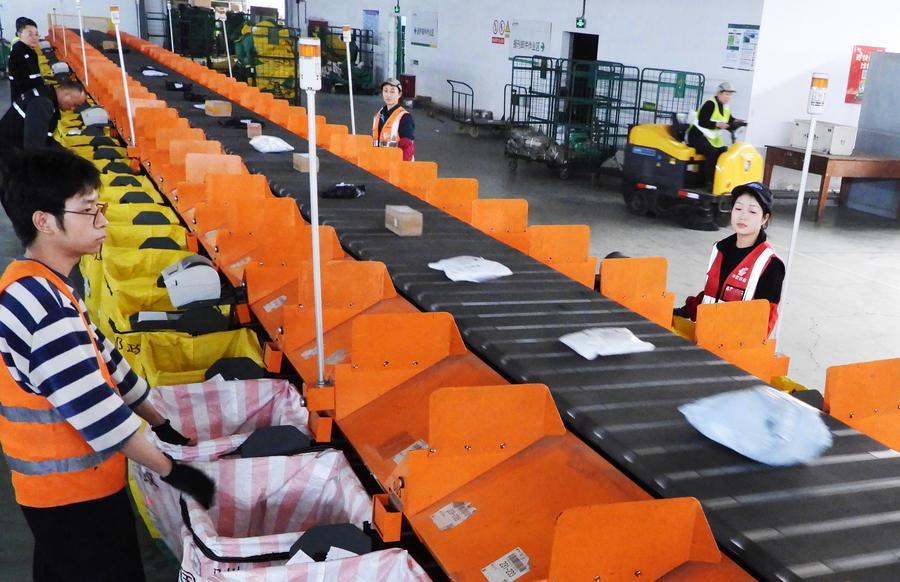 지난 2025년 12월 1일 중국우정 익스프레스물류회사 쓰촨(四川)성 다저우(達州)시 분사 우편처리분국 직원이 택배를 분류하고 있다. (사진/신화통신)