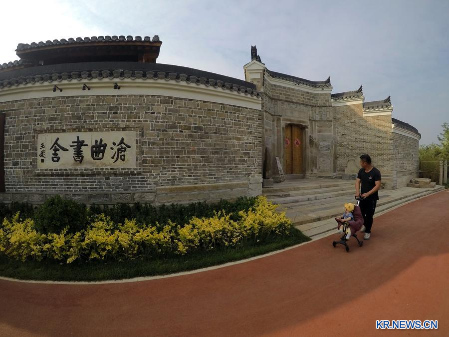 지난 2022년 5월 24일 허베이(河北)성 창저우(滄州)시에서 대운하 인근의 한 고대 서원의 정원을 지나가고 있다. (사진/신화통신)