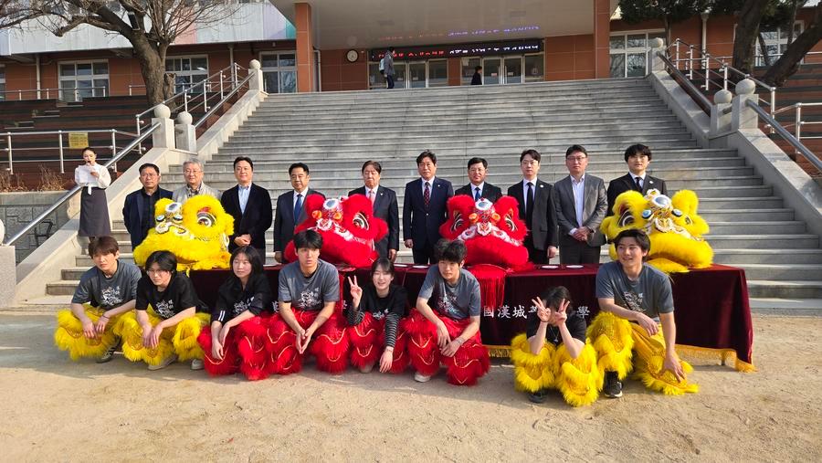 [신화망 서울 3월29일] 한국산둥(山東)상회의 한성화교중고등학교 사자춤 도구 기증식이 27일 서울 한성화교중고등학교에서 열렸다. 이번 행사에는 중훙눠(鐘洪糯) 주한 중국대사관 공사참사관 겸 총영사, 장원쥔(張文君) 한국산둥상회 회장, 리중한(李中漢) 한성화교협회 회장 및 학교 교사·학생 대표, 교포 대표가 참석했다.