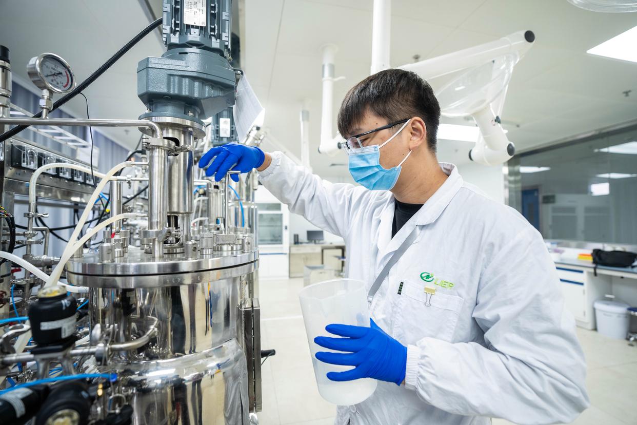 1일 후난(湖南) 진스(津市)시 하이테크산업개발구에 위치한 후난 리얼(利爾)바이오테크회사 발효 실험실에서 직원이 균종 발효 실험을 하고 있다.