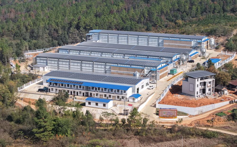 28일 렁수이탄구 마이쯔위안(麥子園)촌의 한 양계장을 드론 사진에 담았다. 2025.11.28