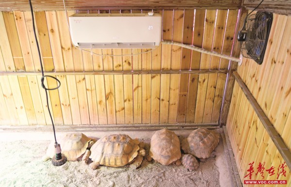 거북이가 에어컨이 설치되어 있는 실내에서 겨울을 지내고 있다. 사진: 쉬싱(徐行)
