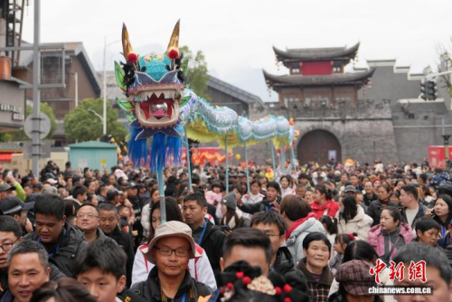 이날 시민들은 거리에서 용춤을 추며 축제 분위기를 더했다. [중신사 양화펑 기자 촬영]