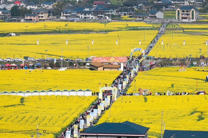 3월 11일, '유채꽃 활짝 피었으니, 삼상(三湘: 후난성 별칭)이 당신을 기다립니다' 2026 후난성 유채꽃 축제가 메인 행사장인 화이화(怀化)시 후이퉁(会同)현 푸쯔(堡子)진 다오샹스톈(稻香詩田) 경구에서 막을 올렸다. 지금은 유채꽃이 한창 피어나는 시기로, 우리 성의 여러 지역에서 펼쳐진 황금빛 꽃바다가 관광객들을 끌어들여 봄나들이와 관광을 즐기게 하고 있다. 사진 장레이(张镭)