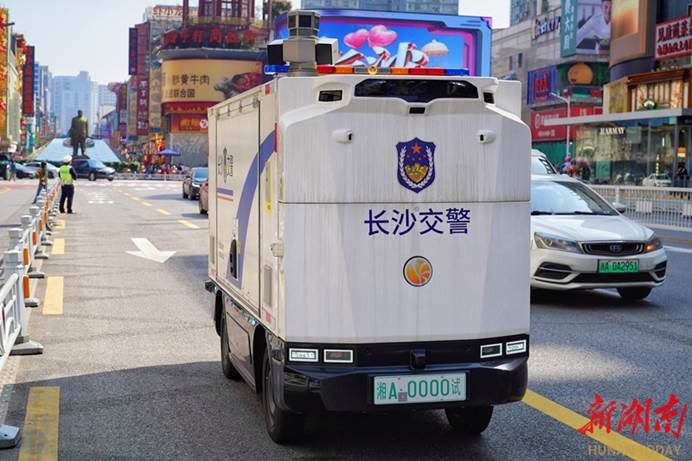 4월 1일, 창사 교통경찰의 무인 순찰차 한 대가 우이광장 핵심 구역에서 시범 운영을 시작했다.