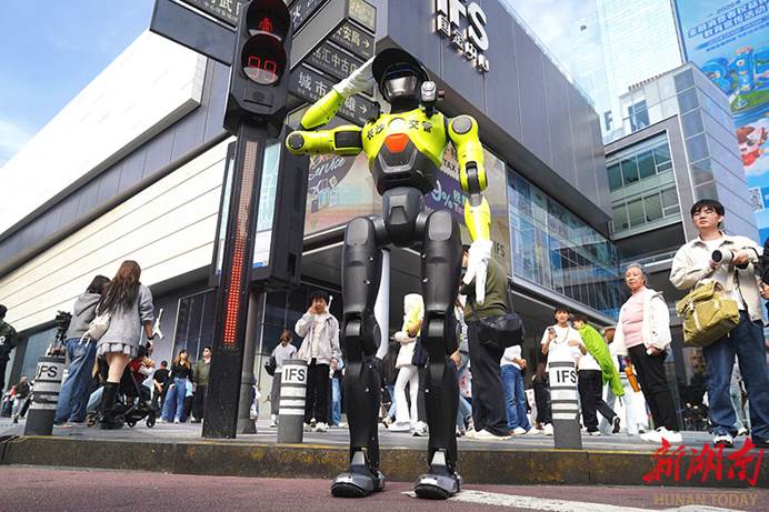 4월 1일, 스마트 교통 지휘 로봇이 창사 궈진센터(국금중심) 스먼커우에서 공식적으로 ‘현장 배치’되어 운영을 시작했다. 이 로봇은