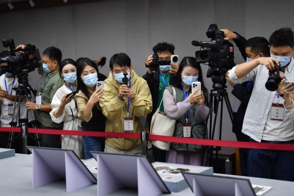 이날 후난성박물관에서 백서를 촬영하는 기자들. 2025.10.13