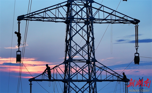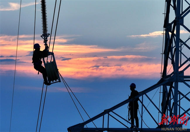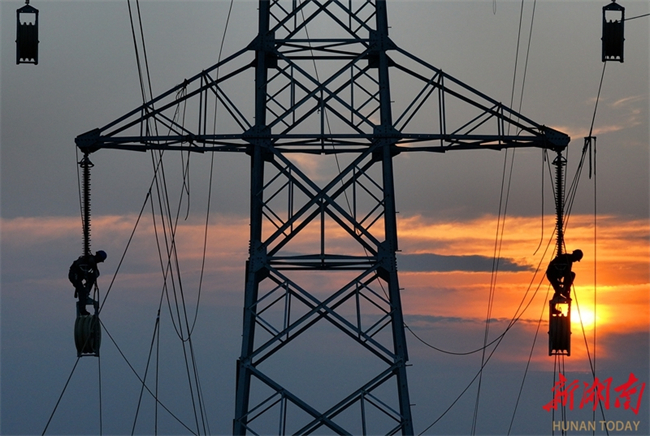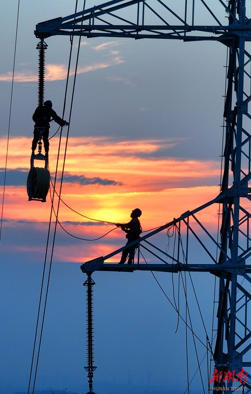 헝양시 증샹구 우모산진에서 고탑 송전선 설치 작업이 한창이다. ‘닝디엔 입상(宁电入湘)’ 공정이 전면 가동을 시작한 후, 자원을 충분히 활용하고 전력 사용의 신뢰성을 보장하기 위해, 국가망 헝양 전력공사는 관할 구역 내 전력망 강화 및 개조 공정을 서둘러 시행하고 있다. 시공 인력은 공사 기간을 맞추기 위해 총력을 다해 고탑 송전선 설치 작업을 진행하며, 프로젝트가 기한 내 고품질로 완료될 수 있도록 노력하고 있다. 사진: 차오정핑(曹正平)