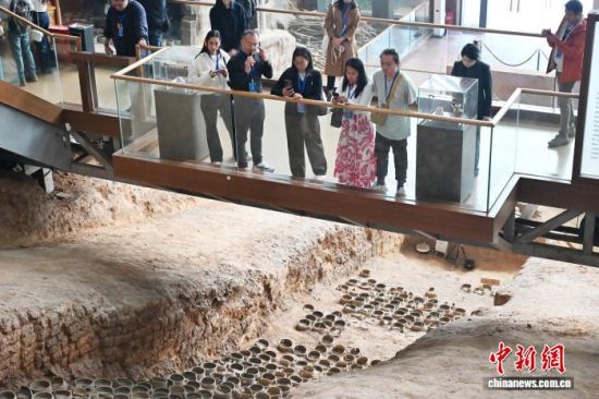 해외 미디어 대표들이 퉁관야오(铜官窑) 박물관을 참관하고 있다. 사진 양화펑(杨华峰)