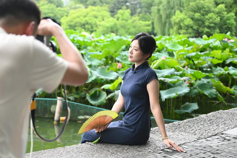 지난 8월 3일 항저우(杭州) 시후(西湖)를 찾은 관광객들이 연꽃을 감상하며 사진을 찍고 있다. (사진/신화통신)