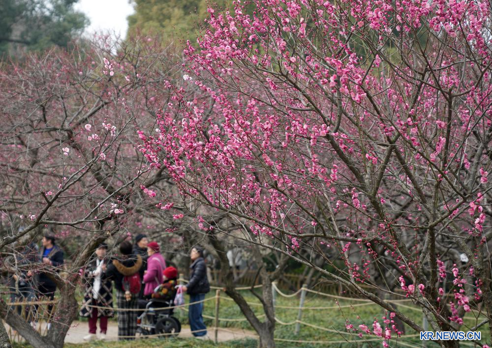 4일 시후관광지 구산 일대에 피어난 매화를 감상하는 관광객. 2026.2.4