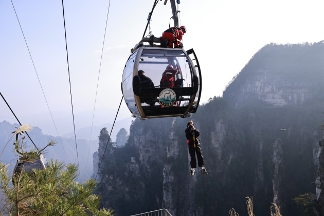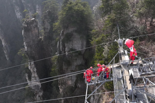 후난성 장자제 국가삼림공원이 15일 톈쯔산 케이블카에서 겨울철 고공 응급 구조 모의 훈련을 실시했다. 이번 훈련은 케이블카의 안전 성능과 관광지 각 부문의 신속한 대응 및 처리 능력을 점검하고, 관광 안전을 보장하기 위한 목적에서 진행됐다.