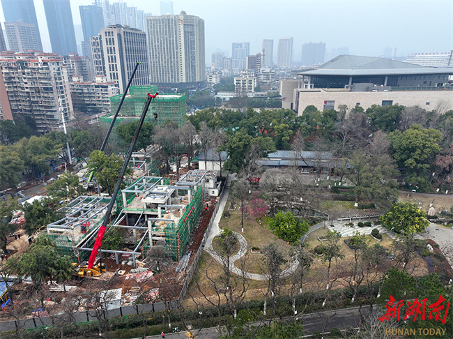 전국 최초의 ‘박물관+공원’ 모델인 후난 열사공원 서광장 문화관광 프로젝트가 추진되고 있다. 이 프로젝트는 지난해 6월에 착공했으며, 부지 면적은 2만 9,000㎡이다. 이미 후난성 박물관과 열사공원을 연결하는 통로를 개통했고, 신축 건물·광장·녹지 조성을 동시에 시공하고 있다. 융합광장은 이달 말 완공되며, 4월 20일 이전에 준공·투입될 예정으로, 문화 공간과 자연 경관의 무결점 연계를 실현할 계획이다. 사진: 자오츠(赵持)