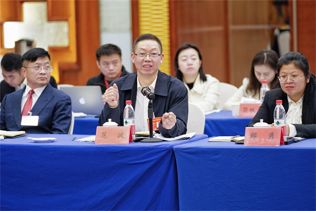 판보(范波) 위원이 전통 산업 개조 및 질적 향상을 위한 제안을 제시했다. 사진: 쉬행