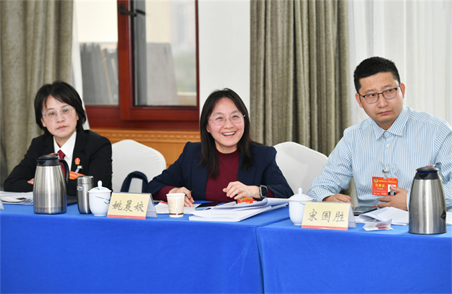 위첸지아오(姚晨姣) 위원이 과학기술 활용을 통한 의료 사업 발전 촉진에관한 제안을 제시했다. 사진: 톈차오