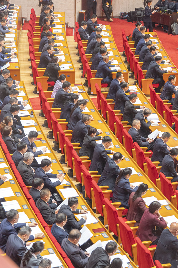 대표들이 정부 업무 보고를 집중 청취하고 있다. 사진: 퉁전시