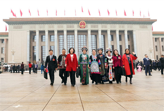 제14기 전국인민대표대회 4차 회의가 3월 5일 오전 인민대회당에서 개막했다. 개막식이 끝난 뒤 후난성 대표단 대표들이 회의장을 나섰다.