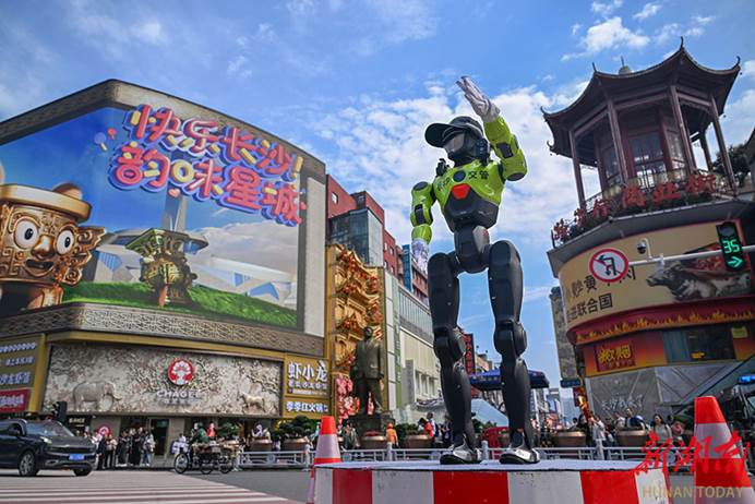 4월 1일, 스마트 교통 지휘 로봇이 창사 궈진센터(국금중심) 스먼커우에서 공식적으로 ‘현장 배치’되어 운영을 시작했다. 이 로봇은