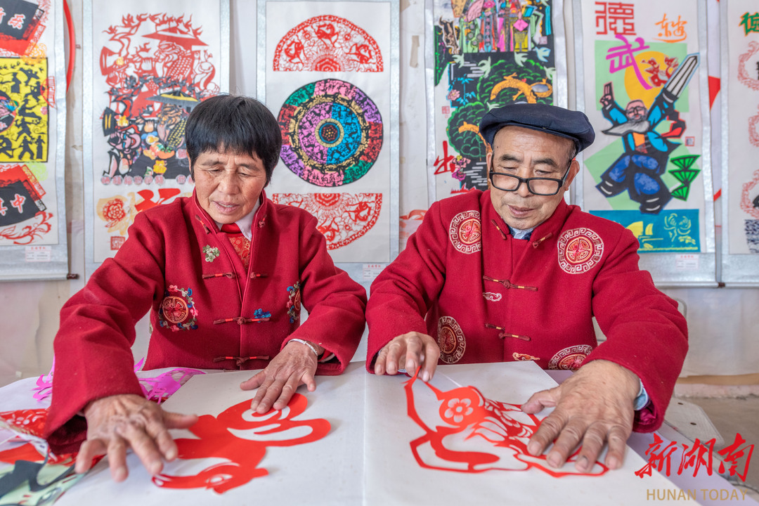 예술 애호가들이 연일 동안현(东安县) 단차이푸진(端桥铺镇) 스바춘(石坝村) 송병전(宋兵前) 종이공예 작업실에 모여 컬러 종이공예 작품 〈만마분등〉을 관람하고 인증 사진을 남겼다.