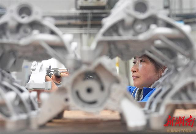 1월 29일, 헝둥현에 위치한 후난 메이후 지능제조 주식회사 생산 공장은 분주한 모습이었다. 최근 들어 기업은 생산 능력을 최대한 가동하여 주문 물량을 서둘러 생산하며, 신년 ‘개문홍(開門紅)’ 달성을 위해 전력을 다하고 있다. 사진: 차오정핑