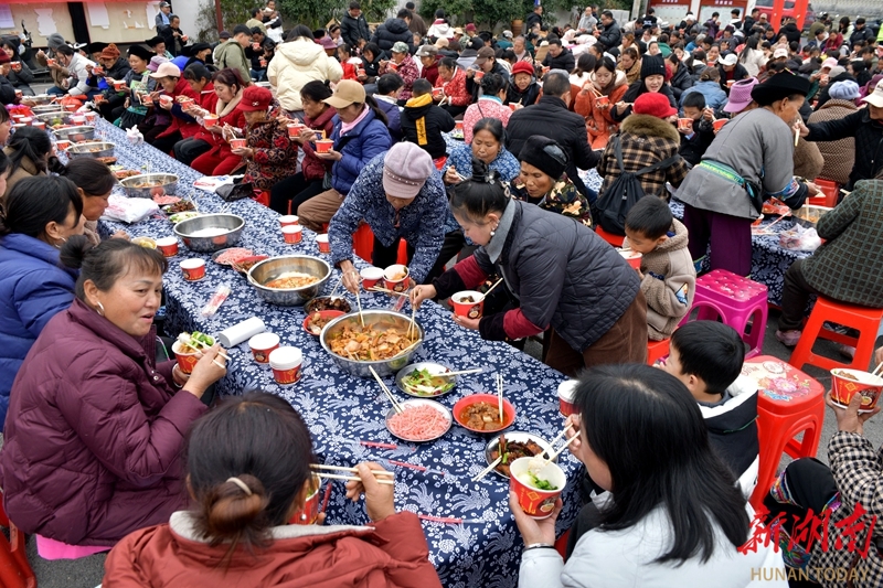 최근 지서우(吉首)시 농업농촌국이 단결촌에서 '향촌에 정을 나누고, 새봄을 맞이하다' 행사를 개최했다. 마 주민들이 한을자리에 모여 찰떡치기, 먀오족 북 연주, 춘련 쓰기, 단체 회식 등 다양한 민속 활동을 통해 함께 새해를 맞이했다. 사진: 야오팡(姚方)